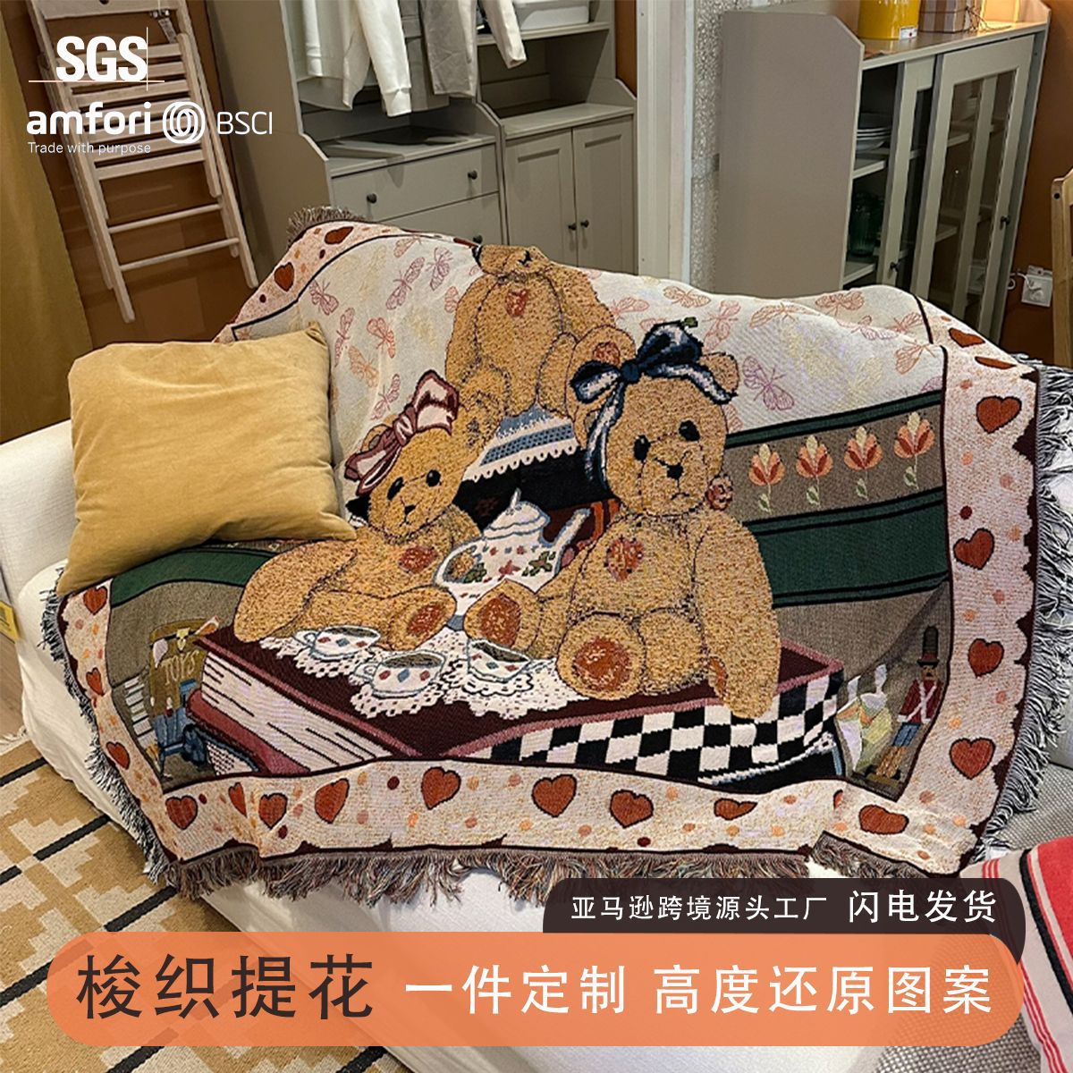 国境を越えた電気商ベアー色織りジャカードソファー毛布insネット赤キャンプポリエステル綿多目的家庭装飾線毛布