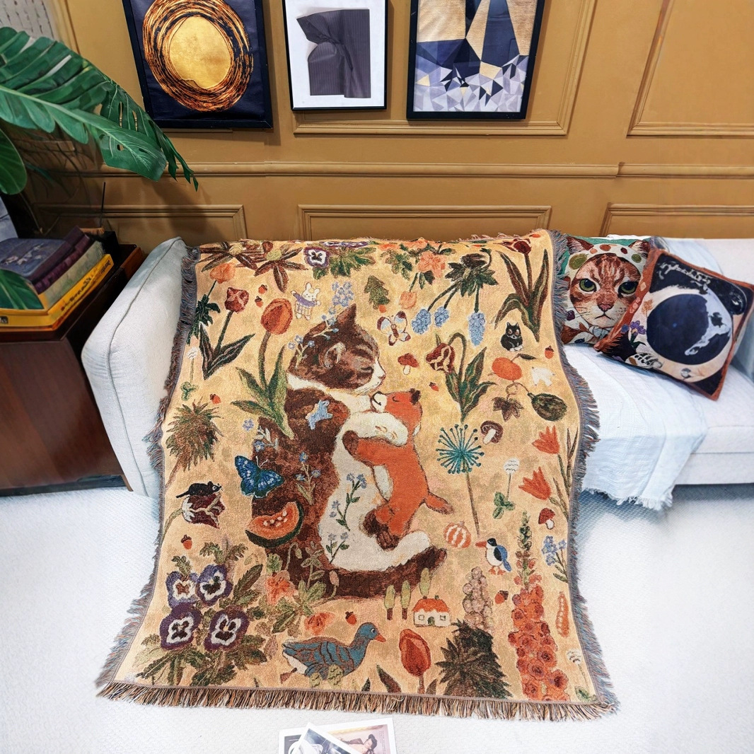 猫報熊綿糸編みタペストリー暖かい癒しのソファーカバーブランケット部屋装飾画