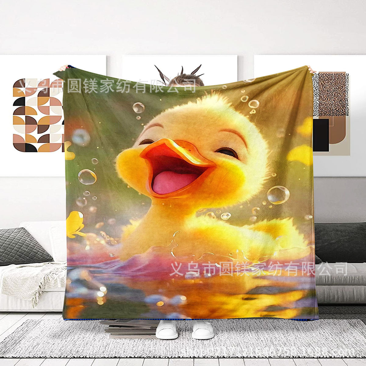 楽しい小黄鴨プリント四季カジュアルフランネル毛布、昼休み毛布、エアコン毛布