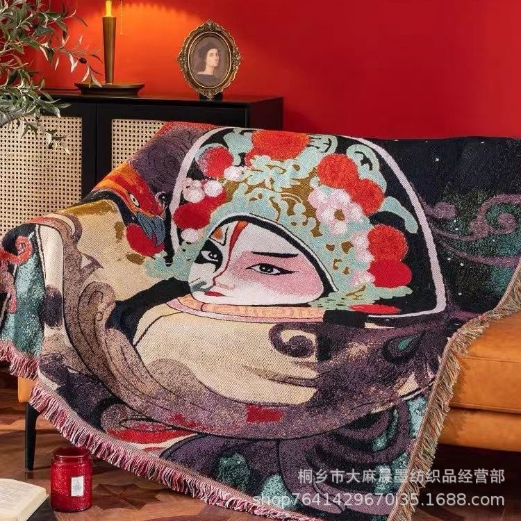 国潮京劇の顔写真ソファータオル国粋糸絨毯多機能カバー毛布