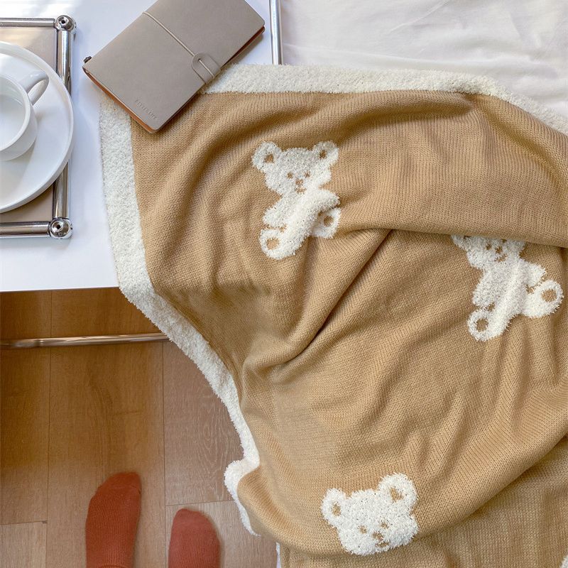 Insシンプル韓国系かわいいベアーのニット毛布のソファーのマントの昼寝の毛布の四季の毛布のレジャー毛布