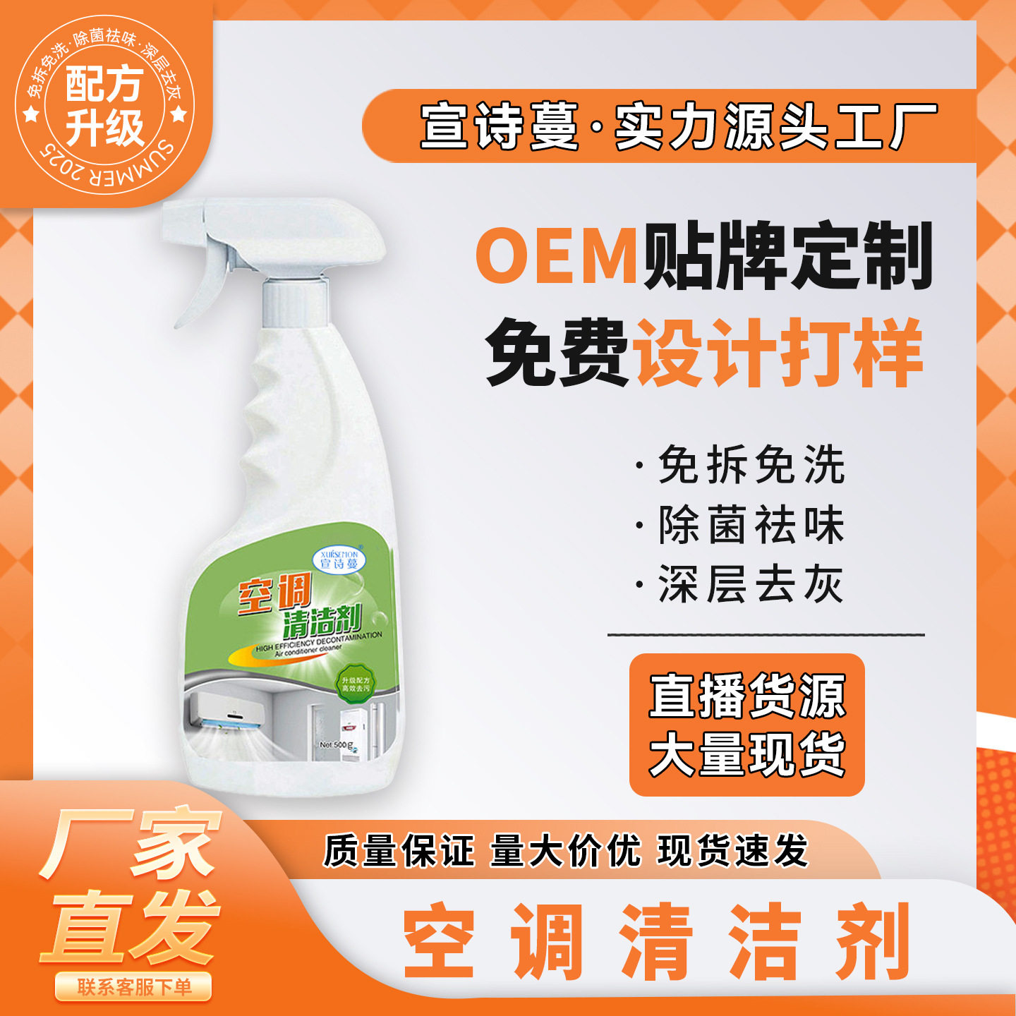 エアコン浄化洗浄剤、消臭・除染・消臭、分解不要の泡洗浄、家庭用除染洗浄剤、加工品