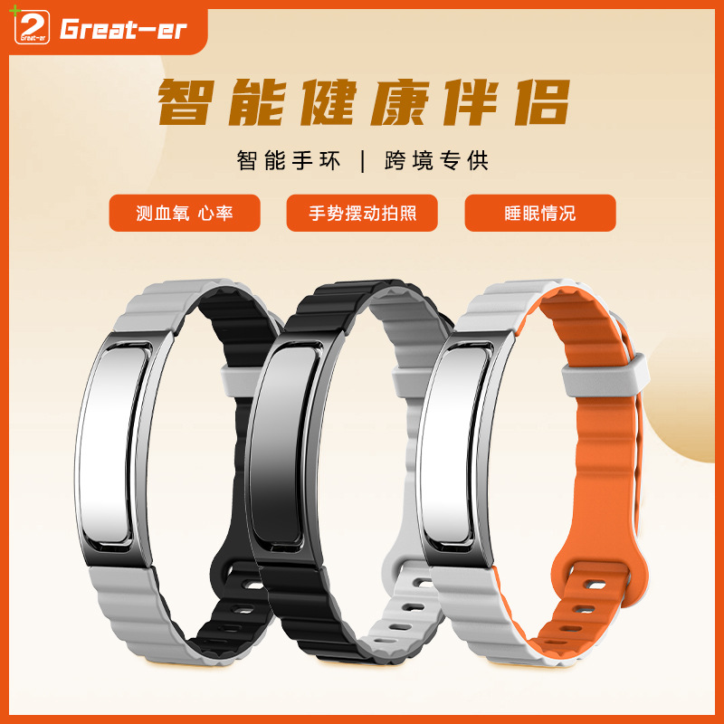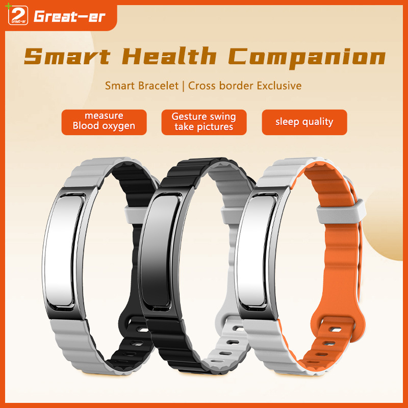 スマートブレスレットは健康、心拍数、血中酸素、睡眠モニタリング、ジェスチャー、写真撮影、スポーツ、歩数計、マルチスポーツモードを測定します。