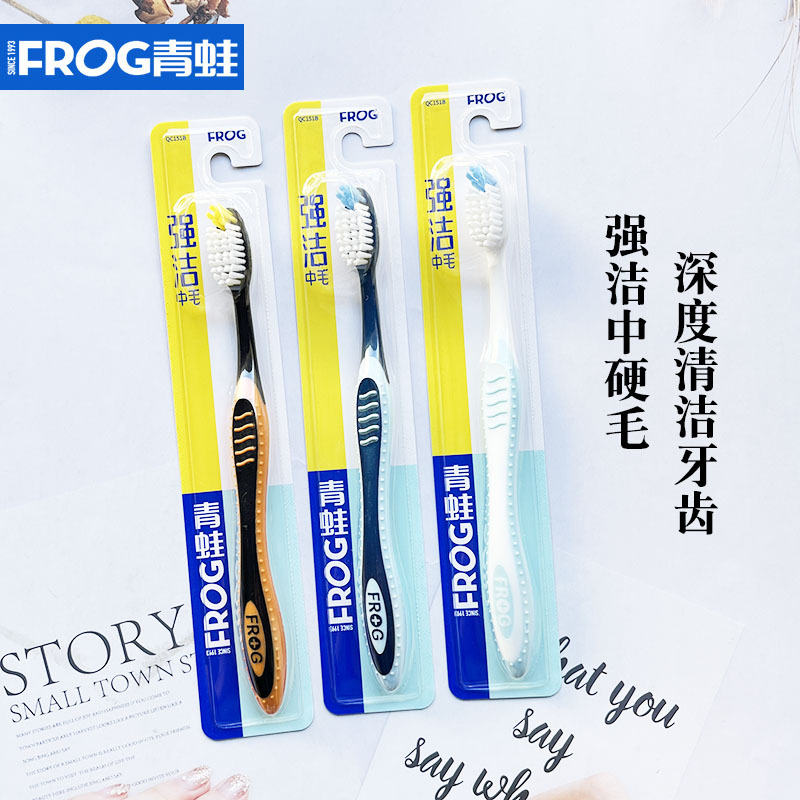 本物のカエルの歯ブラシの中の硬い毛は歯の黄色を取り除きます。