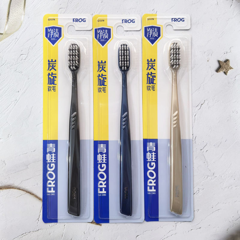カエル歯ブラシ軟毛成人家庭服深層清潔家庭用男性女性専用超微細ブラシ糸独立包装