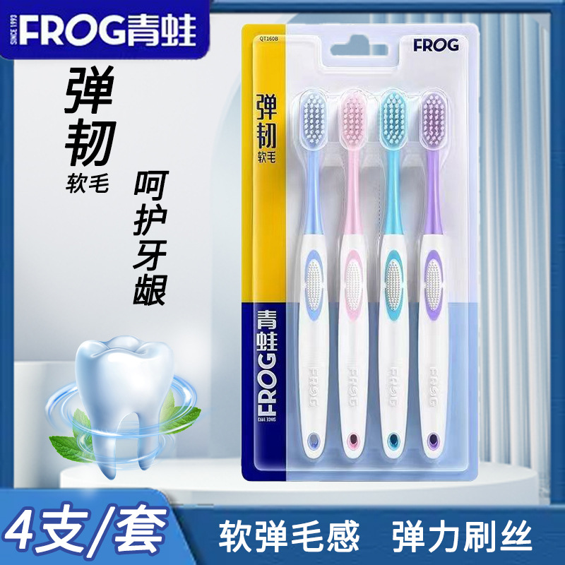 カエルの歯ブラシ160bの柔らかい毛4本セットの清潔な口腔保護の歯茎は男性の女性の学生の家庭服の卸売りを取り除きます。