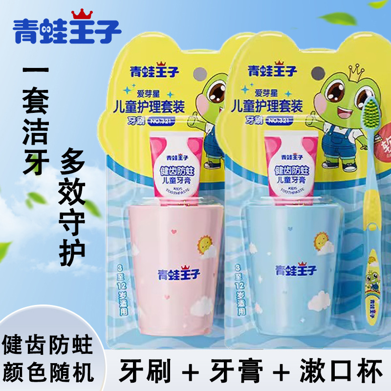 カエルの王子の子供の歯磨き粉の歯ブラシの組み合わせは子供の歯ブラシの歯磨き粉の歯のカップの看護のセットの柔らかい毛の男女のタイプを詰めます。