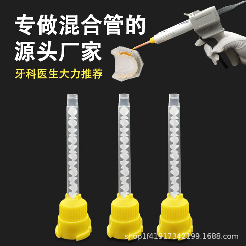 メーカー軽量混合チューブ黄色混合ヘッドシリコーンゴム印刷フィルム歯科使い捨て口腔内注射ヘッド
