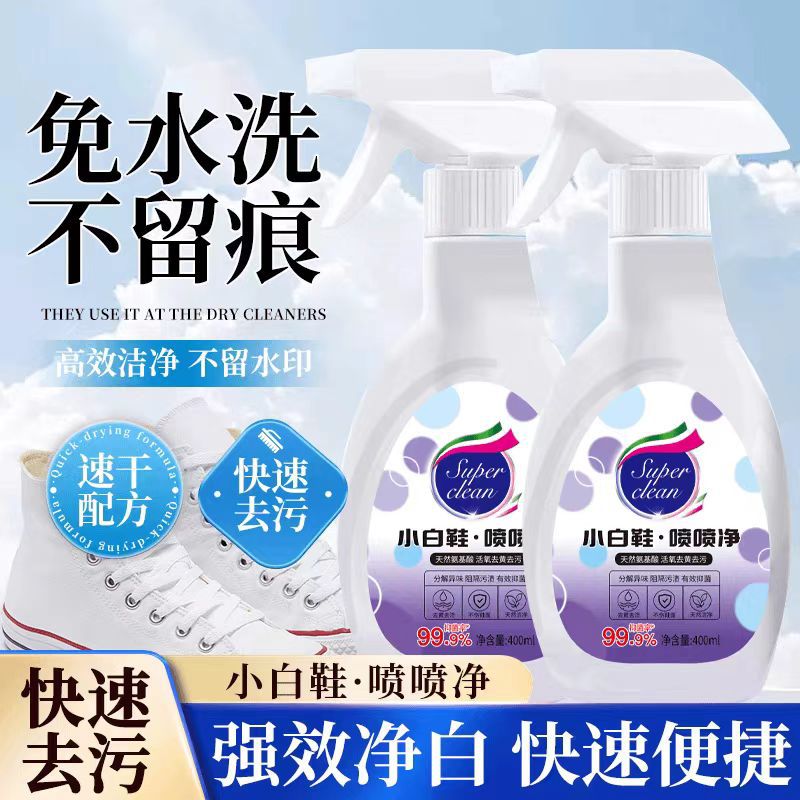 小さな白い靴スプレー、水を使わず、跡が残らない、迅速な除染、強力な美白と除染、靴とブーツの泡クリーナー