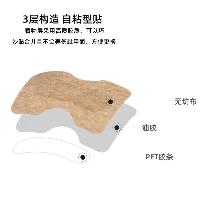 爪のケアパッチは甲の溝に嵌め込まれています。肉の中に足の指を長くして保護します。