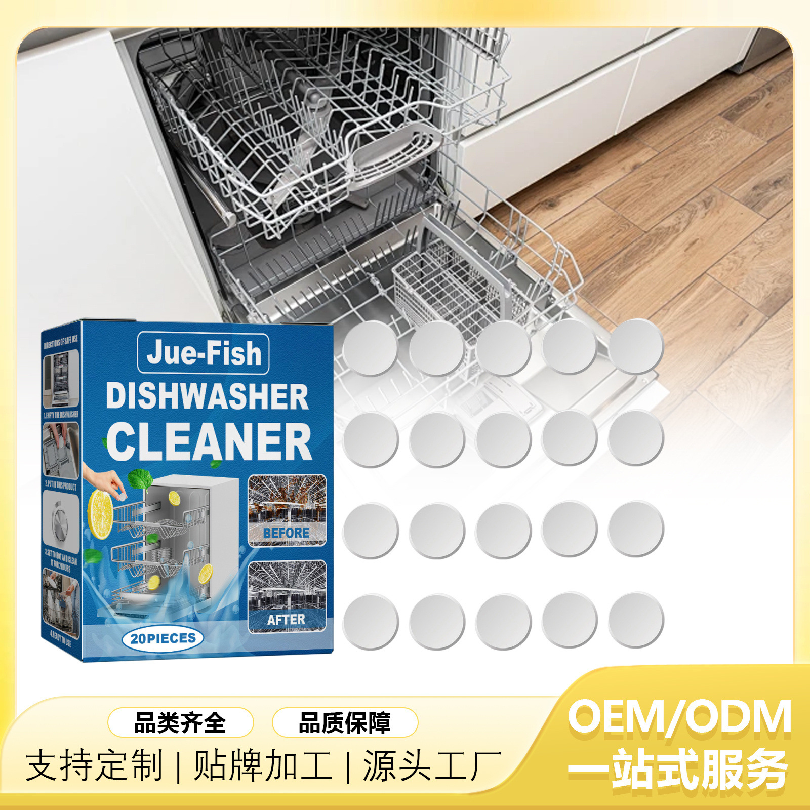 Jue-Fish 食器洗い機用洗浄タブレット、除染、油汚れ、スケール洗浄タブレット、食器洗い機専用メンテナンスタブレット