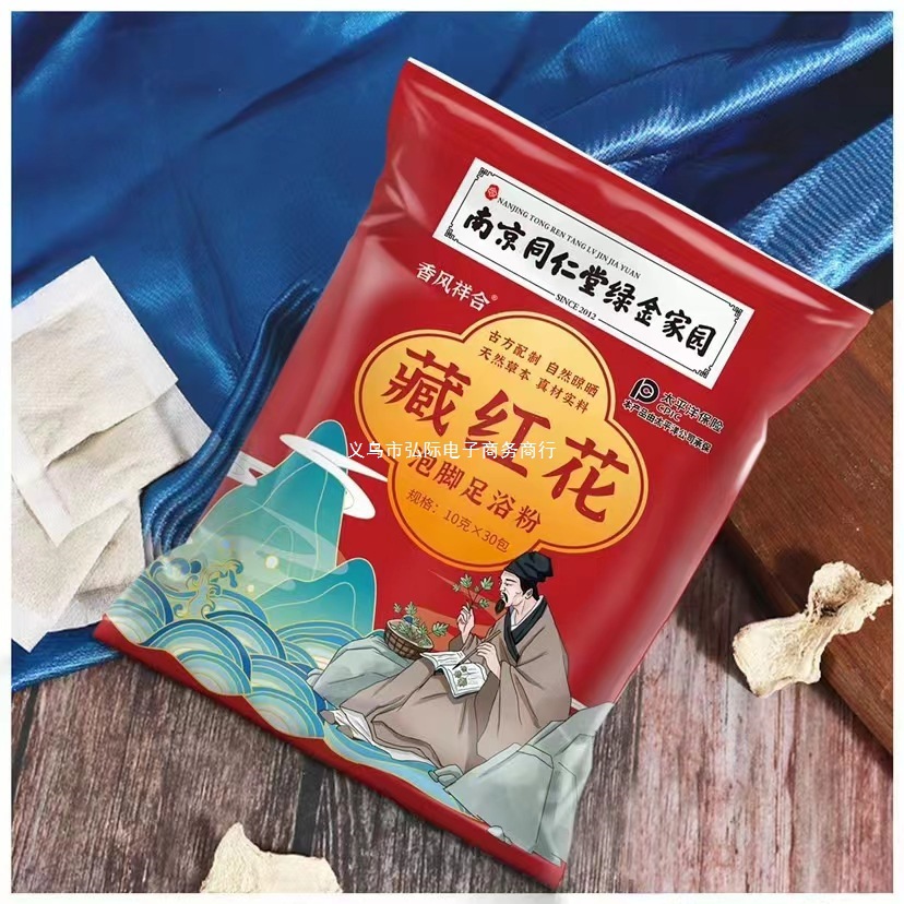 足湯粉十八包郵便足湯粉チベット紅花袋味独立包装南京同仁堂足湯粉300g