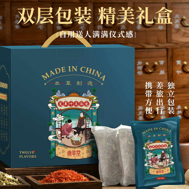 康草堂艾草艾葉泡足薬包家庭用紅花足浴粉風呂草本足浴包セットギフトボックス