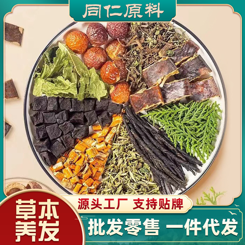 シャンプーパック側柏葉石けん角無患子霊芝草本頭治療粉流通代発本草シャンプー粉