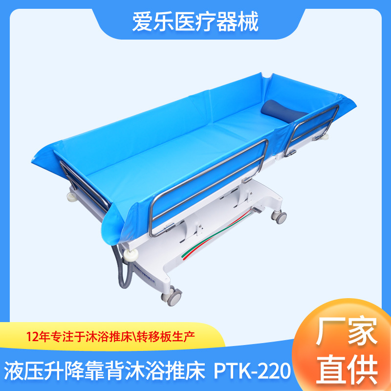 愛楽PTK-220のペンキを焼くタイプの油圧昇降背もたれ移動式入浴老人シャワー補助バスベッド