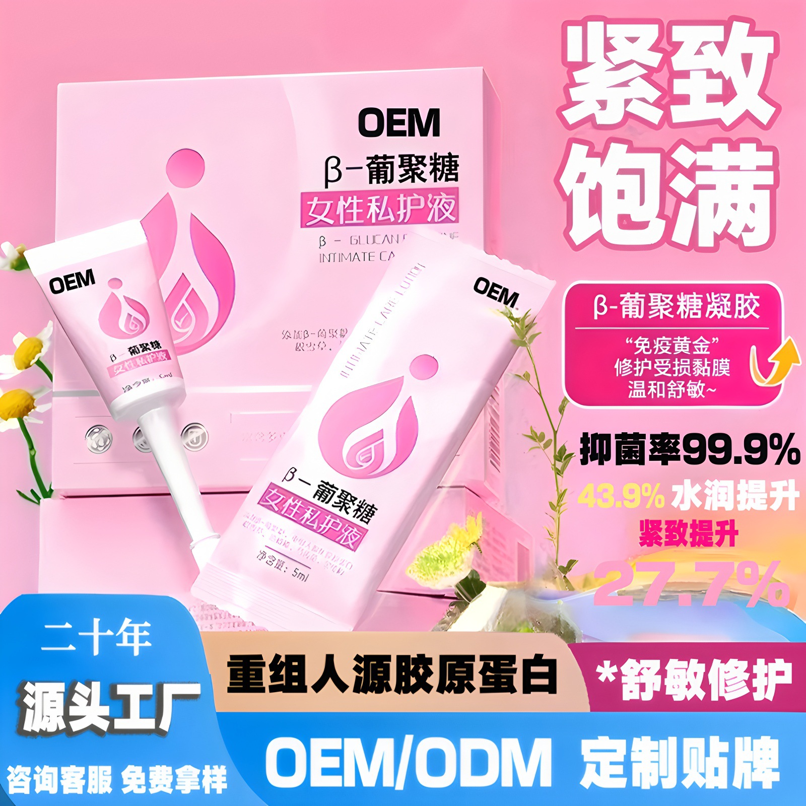 婦人科プライベート引き締めジェル、女性用プライベートケア液、抗菌プライベートパーツ乾燥・保湿グルカンジェルOEM加工