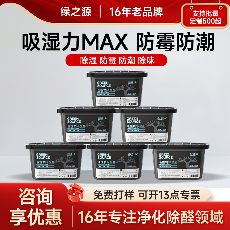 グリーンソース 大容量活性炭除湿ボックス 6個入り(500ml) 活性炭乾燥剤除湿ボックス 吸湿