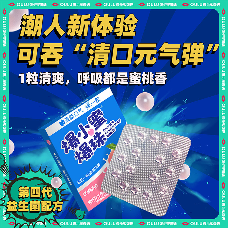 爆小蜜爆珠代発振音同金清新口調爆珠糖白桃ミント味口香爆珠