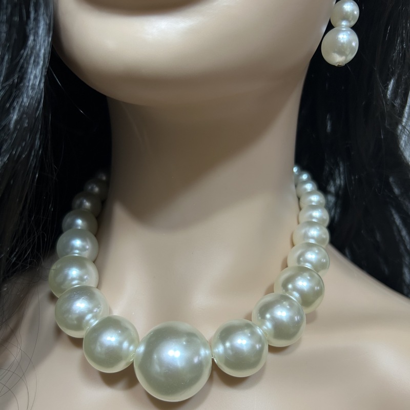 欧米の大きな白い真珠のネックレスは誇張しています。