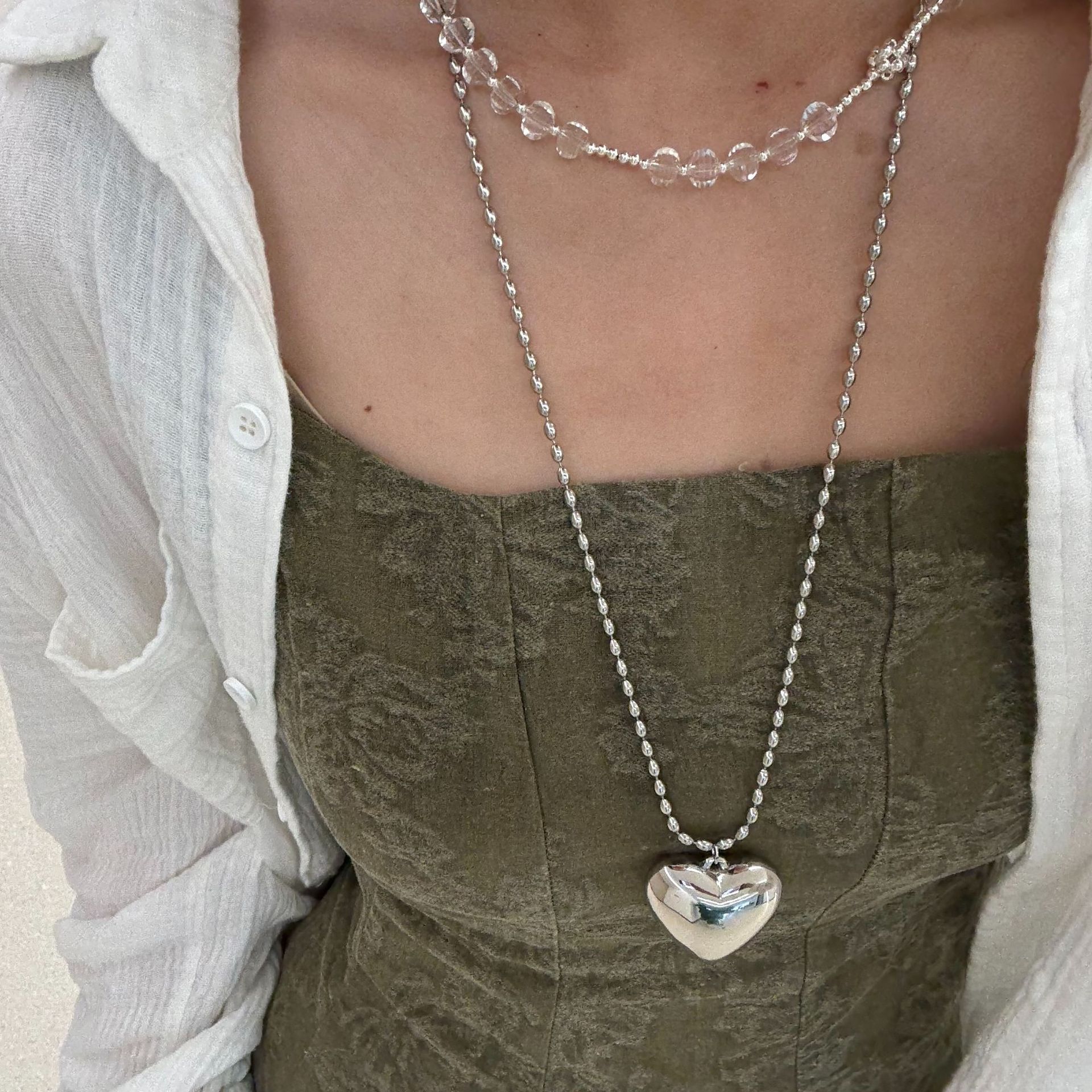 甘くてクールなニッチ誇張された大きな愛のメタルロングネックレス女性用、軽い豪華でシンプルな女性用人工ファセットクリスタル鎖骨チェーン