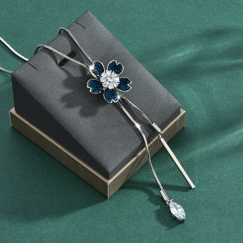 新しいブルー涙ドロップペンダントネックレスレディース鎖骨チェーンインスタイルニッチデザインハイエンドシンプルで多用途