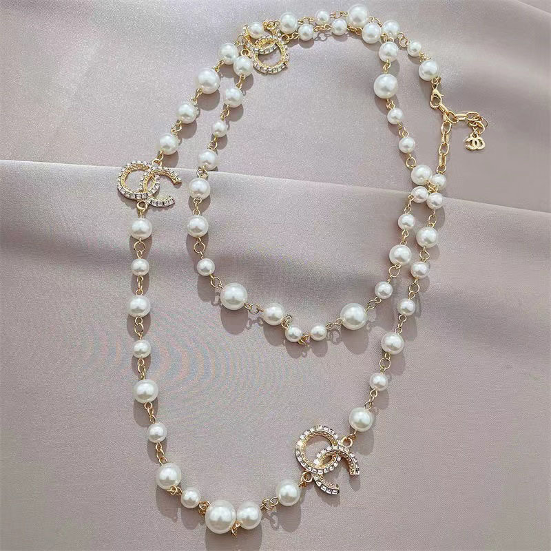 2024ins 日本と韓国スタイル AKI 同じスタイルのティーカラービーズネックレスニッチデザインライト高級気質ロングセーターチェーン