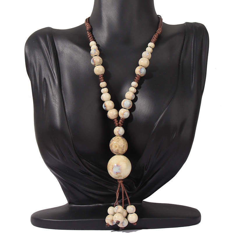 レトロな文芸のシンプルな小さい清新な短いペンダントの小さい鎖のネックレスは陶磁器の民族の風の鎖を調節することができます。