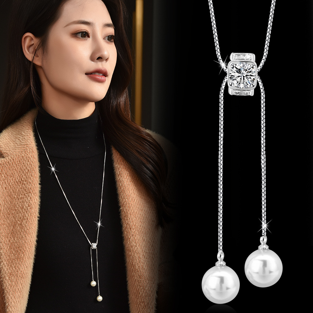 メーカー直販秋冬ファッションシンプルでファッション的なロングタイプのフリンジネックレス女性真珠フリンジジルコンのルービックキューブのセーターチェーン