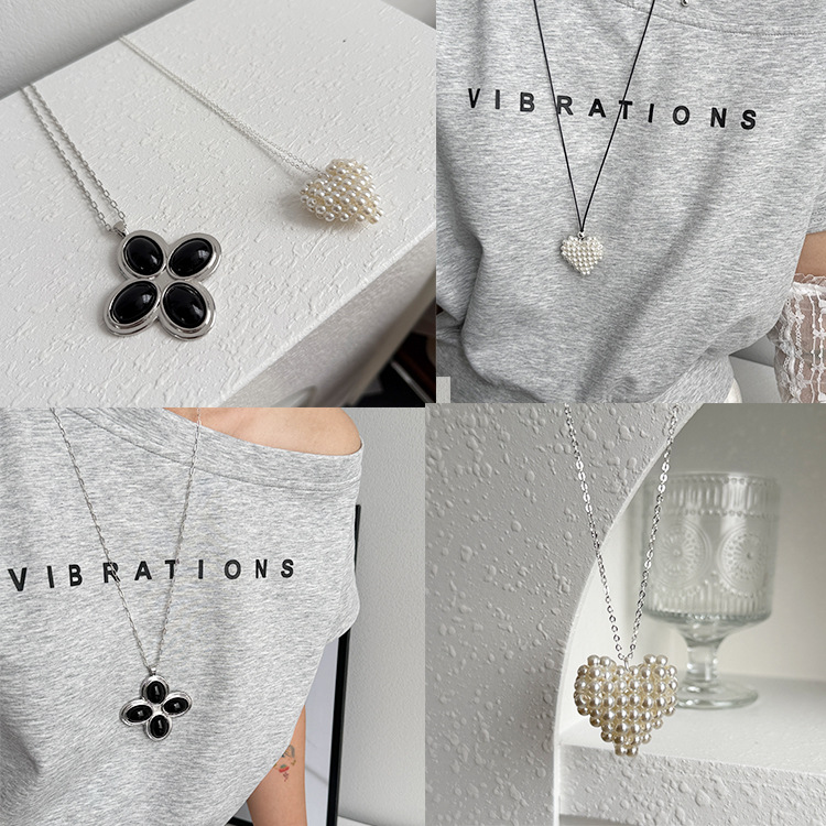 韓国ニッチデザイン立体ラブボールブラック四つ葉のクローバーネックレスインシンプルな気質セーターチェーン女性用