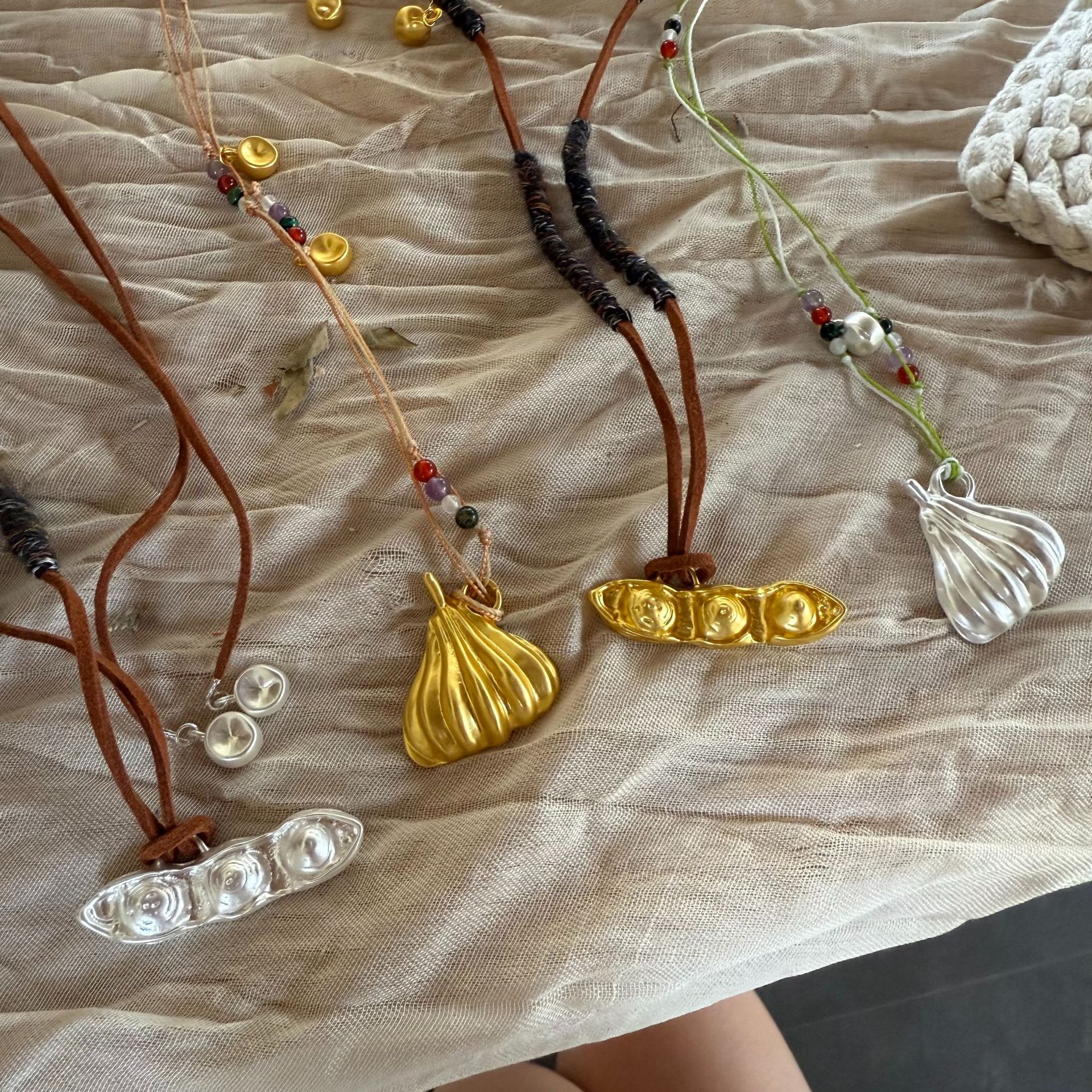 テクスチャードパンプキンロープネックレスオリジナルニッチデザイナーレトロピーナッツセーターチェーンフレッシュでスイートなネックレス