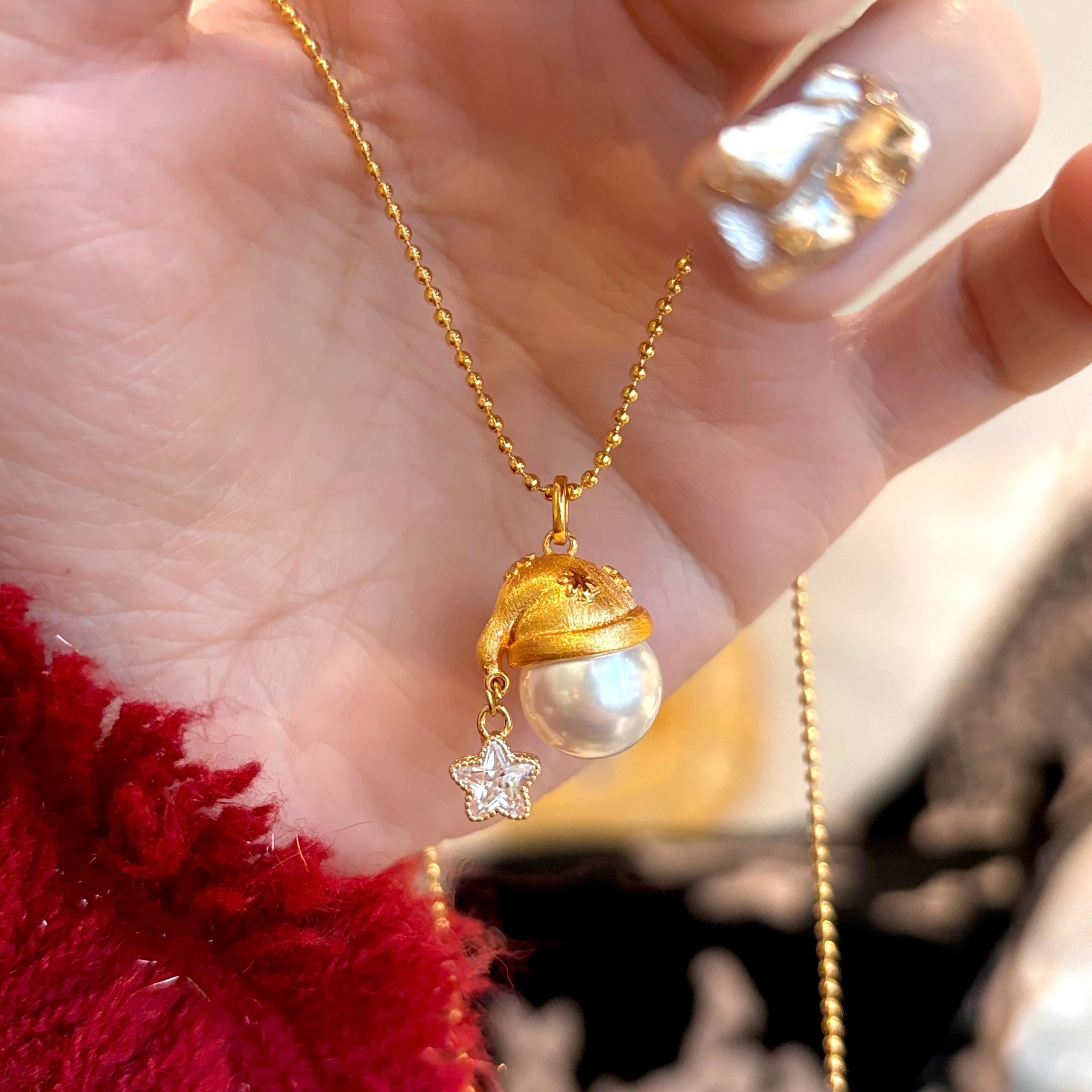 真珠の糸のクリスマスの帽子のペンダントの女性のins風のセーターのチェーンの軽くて豪華な高級感のフラッシュの星のネックレス
