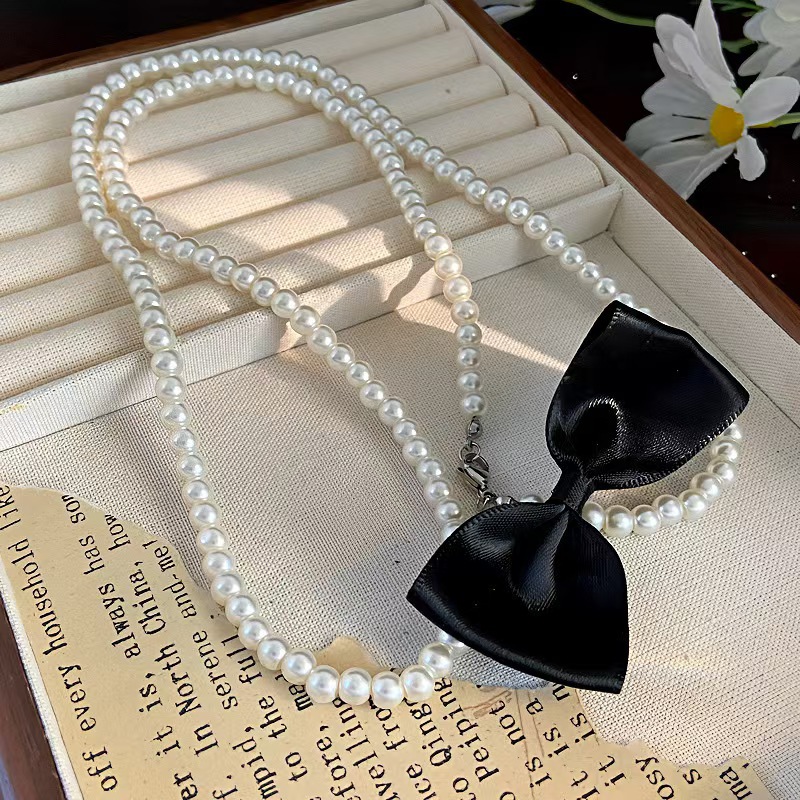 工場卸売りの起爆蝶結び真珠の長いネックレス女性の甘い大衆デザインのセーターチェーンの高級感