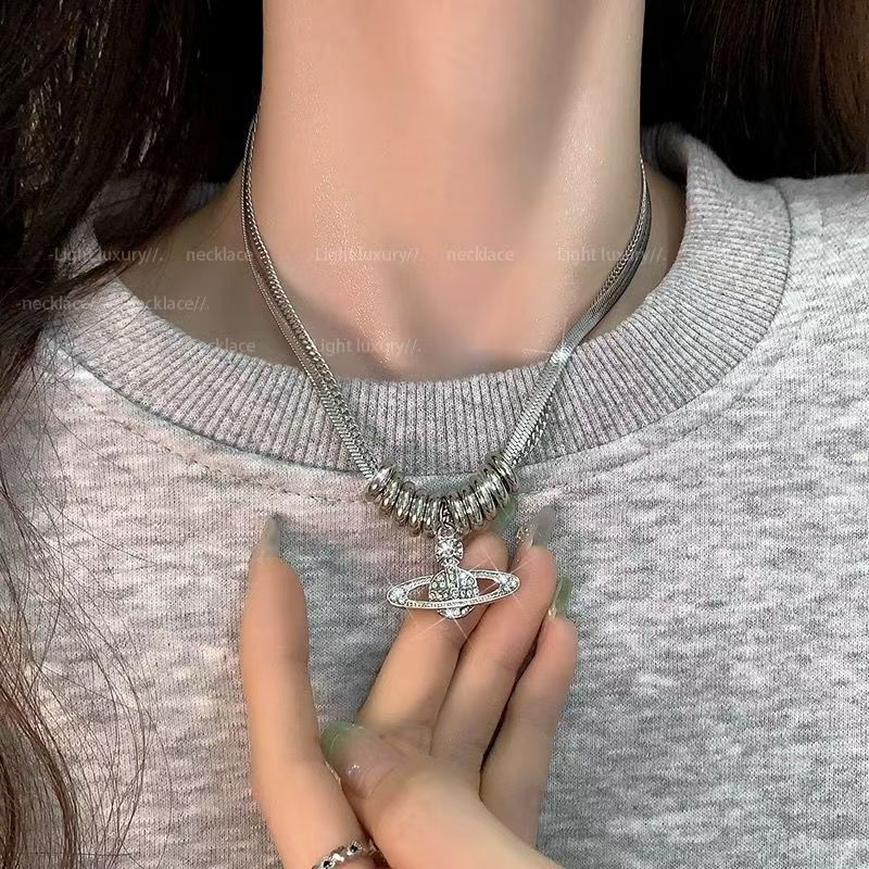 博主同金メッキ古銀古金光輪ペンダントネックレス小衆高級感軽豪華ダブルロープ調節可能セーターチェーン