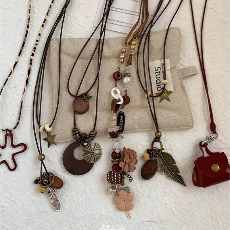 新しい中国風の禅ロングフェザーネックレス女性のボヘミアンセーターチェーンアクセサリーレトロエスニックスタイル装飾ペンダント