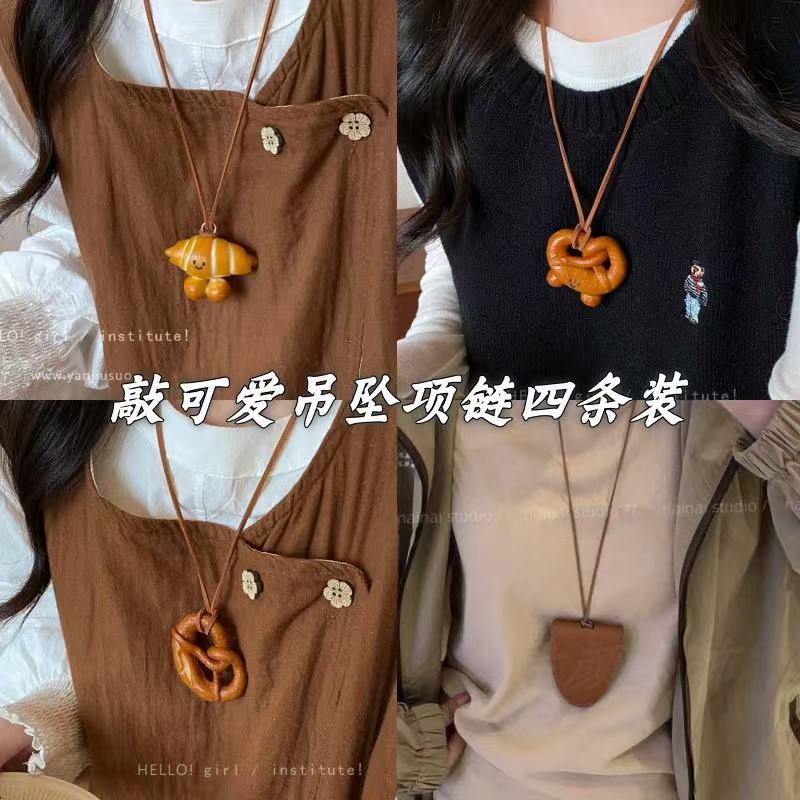 かわいい大衆デザインアルカリ水結びパンペンダントネックレス女性秋冬牛角包長毛服チェーンアクセサリー