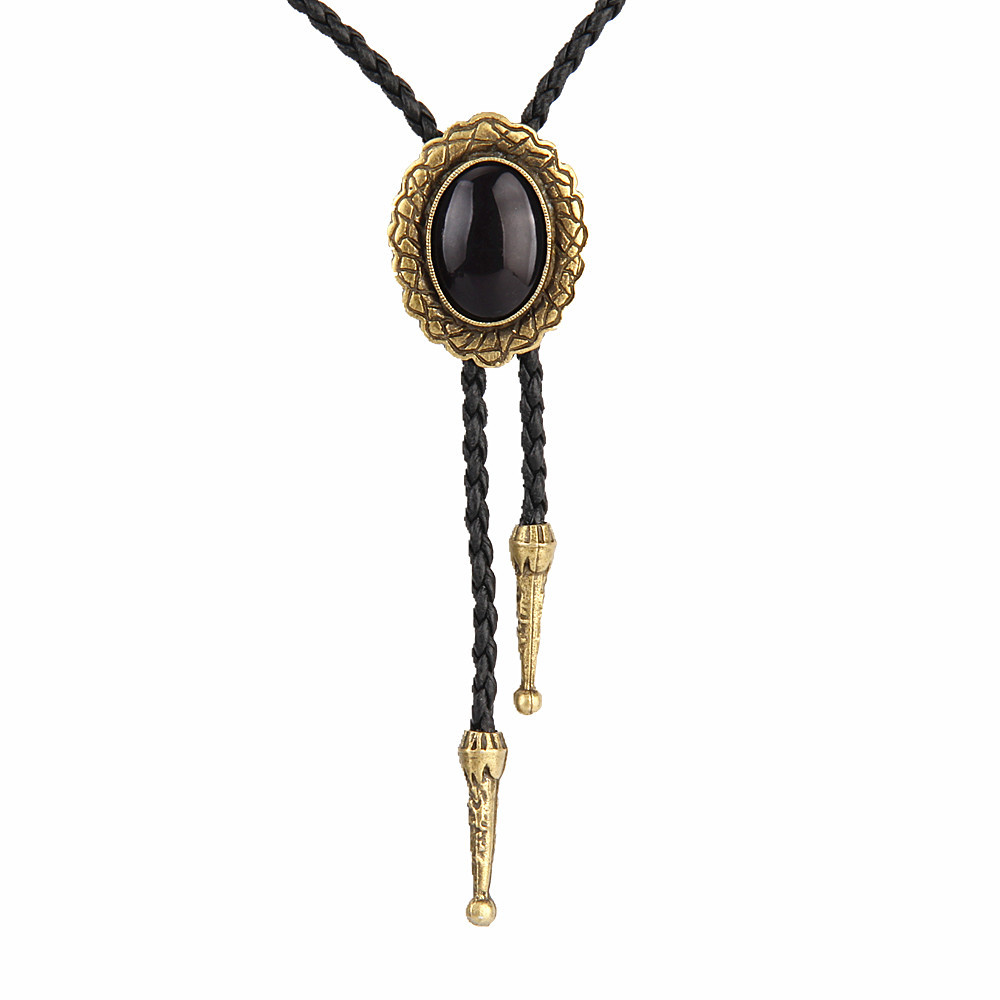 欧米のファッションのポロのネックレスのハスの葉の辺の復古の合金の毛の服の鎖の黒い縄の長い項の装飾品は代行します。