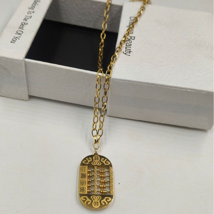 色あせしないセーターチェーン、ステンレスネックレスアクセサリー、大きなそろばんセーターチェーン、ファッショナブルな全国トレンド、富を引き寄せる