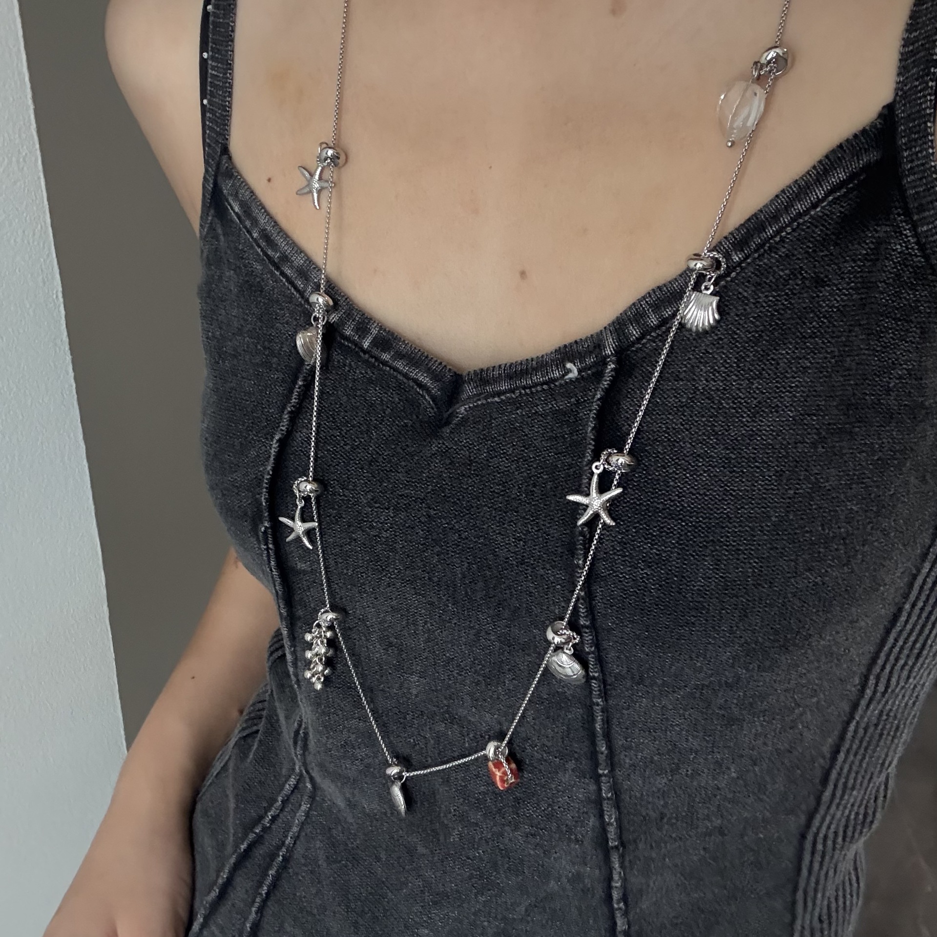 ステンレス鋼ニッチデザインネックレスペンダントヒトデシェルブドウのつるタッセルセーターチェーンパーソナライズされたファッションウエストチェーン女性用