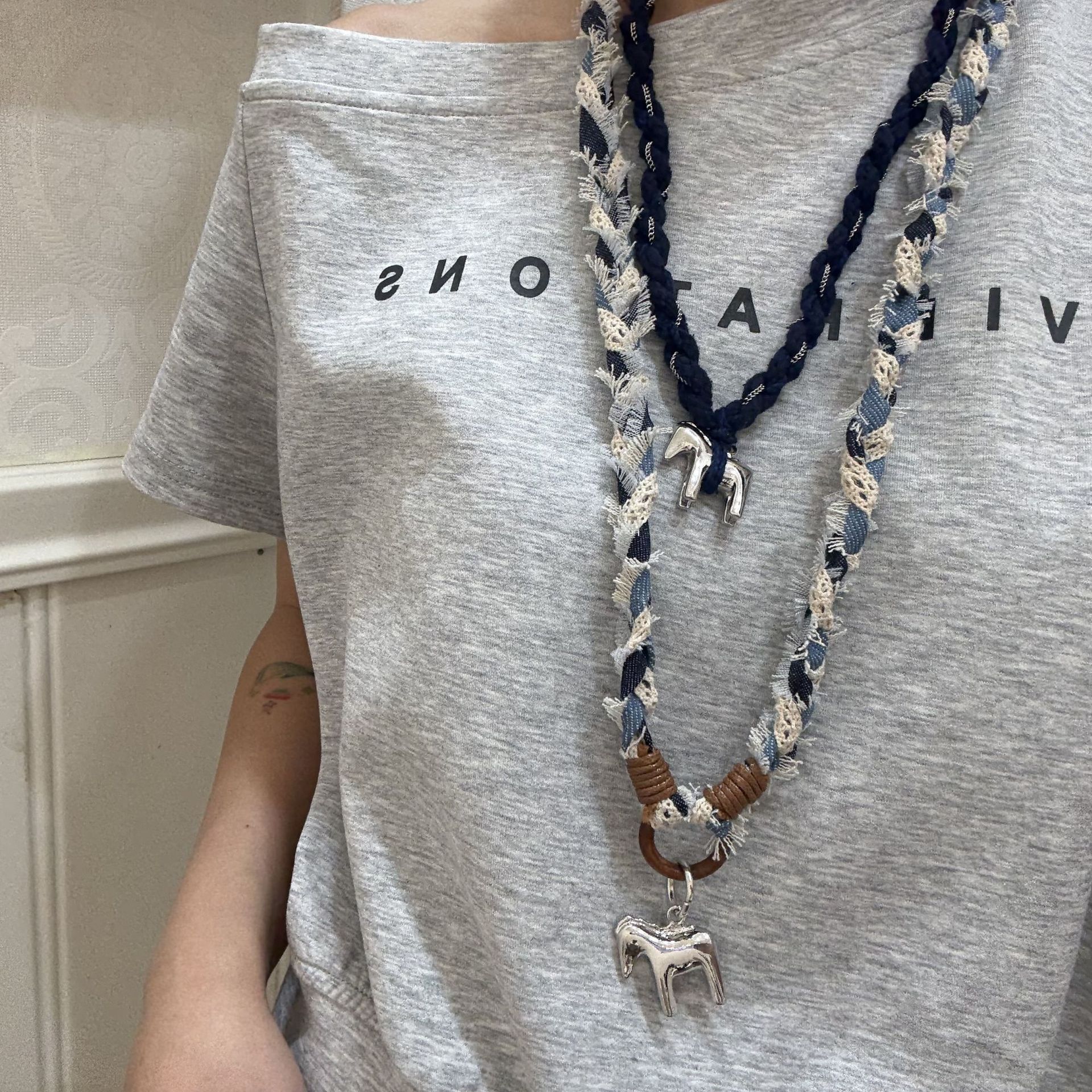 新しいトロイの木馬彫刻コインネックレスカウボーイ手織りネックレスポニーペンダントニッチインセーターチェーン女性用