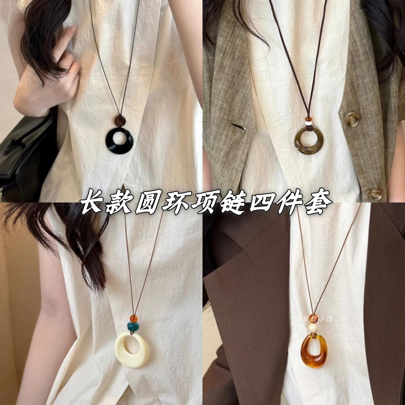 黒縄円環ペンダントの長いネックレス女性新中国式デザイン高級セーターチェーン