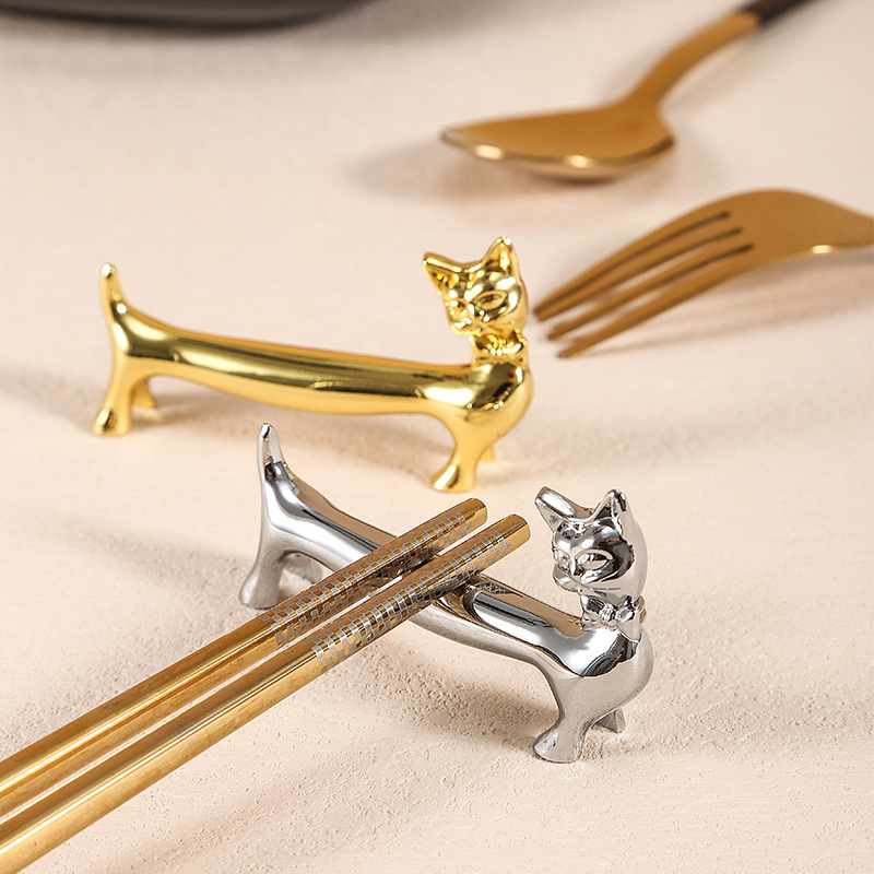 箸置き 枕型 軽奢風 テーブルトップ メタル 動物 猫 クリエイティブ ナイフ・フォーク・スプーン・箸ホルダー 家庭用食器収納ラック
