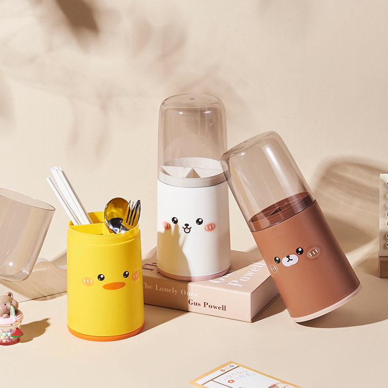 漫画の箸籠は水を切ることができます。家庭用キッチンナイフとフォークの箸筒は蓋付き防塵分格食器収納棚です。