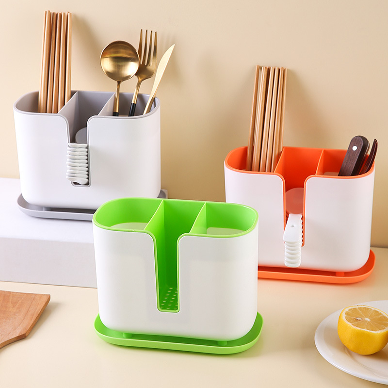 キッチン 3 コンパートメント箸ケージ二層取り外し可能なスプーン収納ラックデスクトップ箸とスプーン排水ラック家庭用箸ホルダー