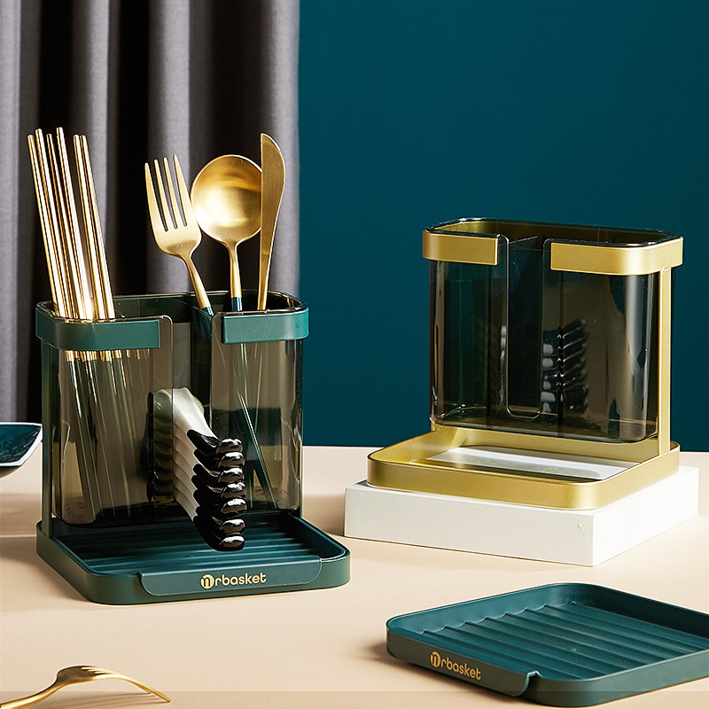 銀杏の葉型箸立て、水切りトレー付きキッチン収納、箸・スプーン置き、卓上収納ラック、収納ボックス、ヨーロピアンスタイル