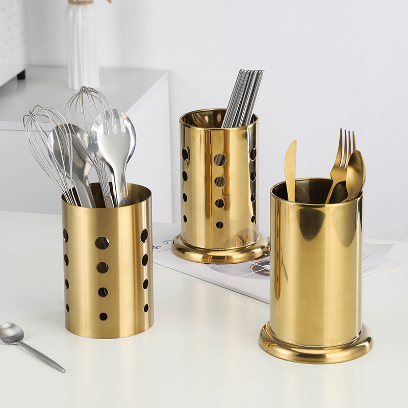 韓国式ステンレス箸筒商用金色焼肉店はさみ収納ケース水切り食器籠湯スプーン筒