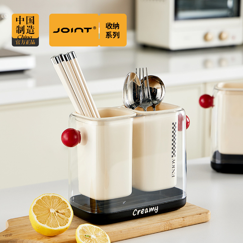 ドーパミン風高級箸収納ボックス 家庭用プラスチック箸入れ キッチン収納ラック 水切り箸箱 箸筒 赤いビーズ付き