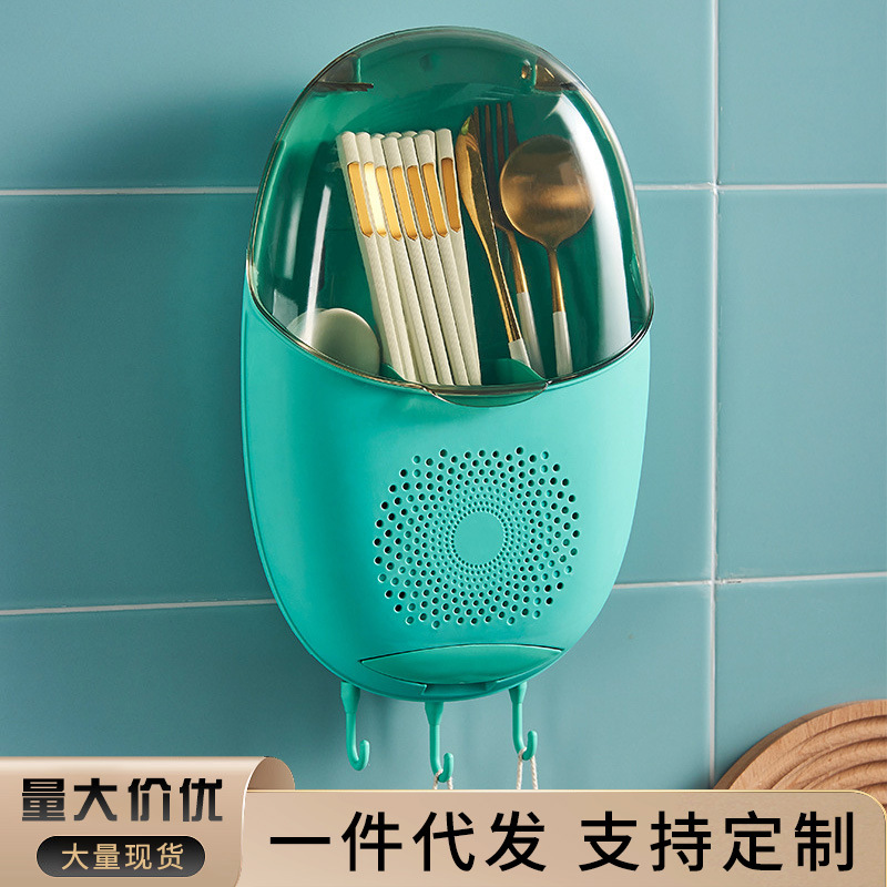 蓋付き箸かご、壁掛け、パンチフリー箸かご、キッチンスプーン、家庭用排水管収納ボックス、換気収納ラック