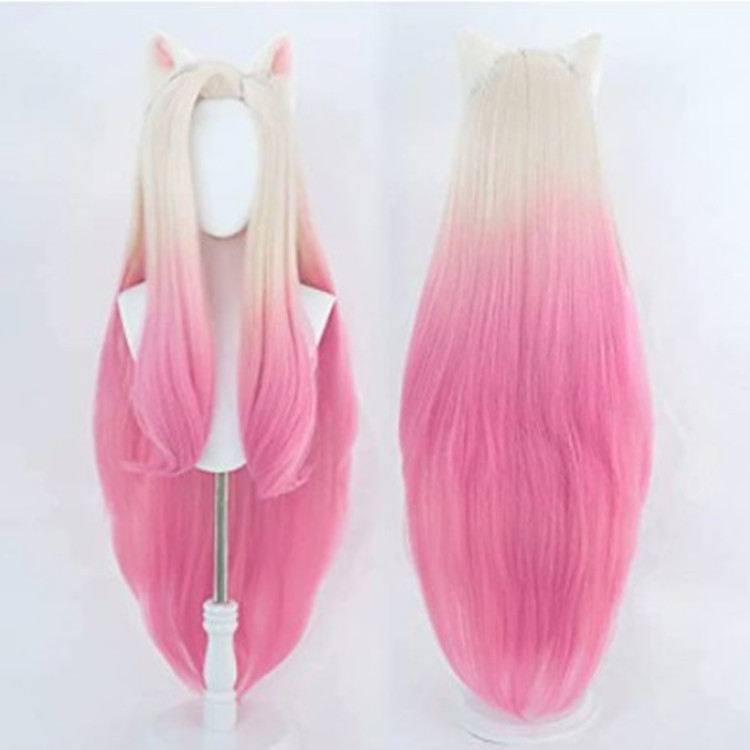 英雄連盟lol kda阿狸黄色グラデーションピンク長髪新皮膚女団cosかつらwigs