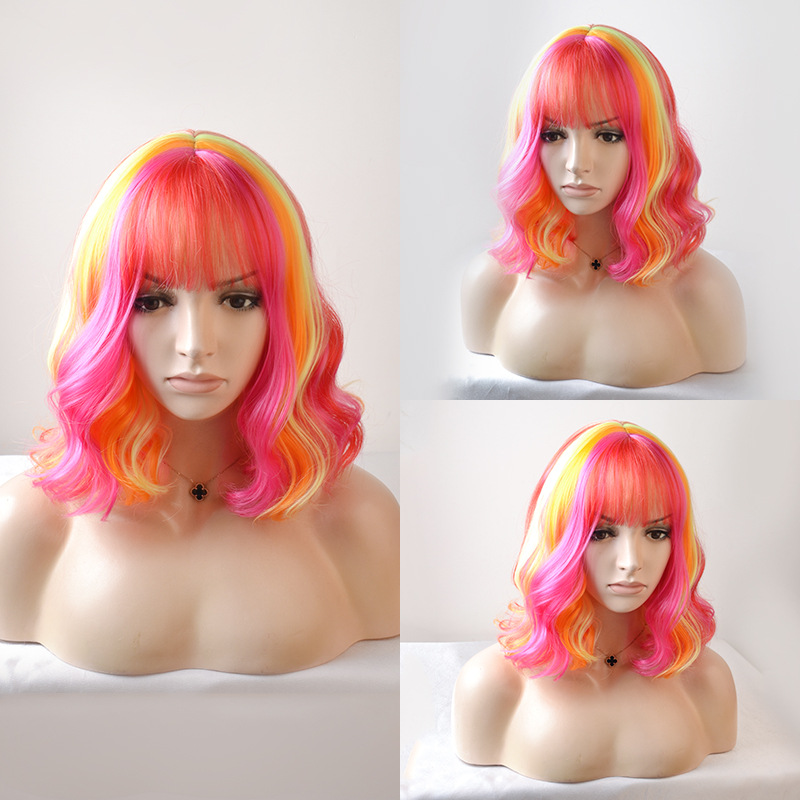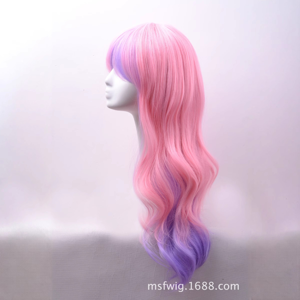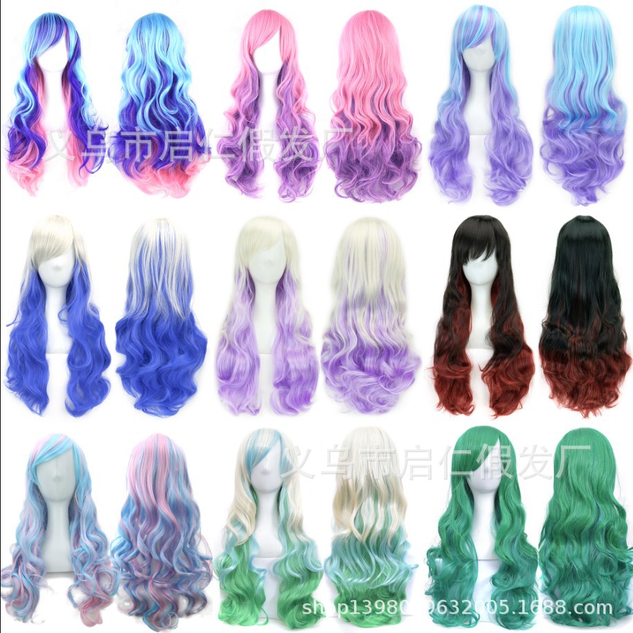 アニメカラーcos斜め前髪ロングカールダブルグラデーションカラーロングカール多色混染ロングヘアローズネット