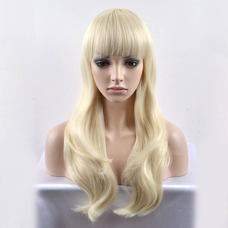 ウィッグヘッドギア少し巻き毛ヨーロッパとアメリカの女性の前髪ウィッグ化学繊維高温シルク卸売ライトゴールデンコスプレ
